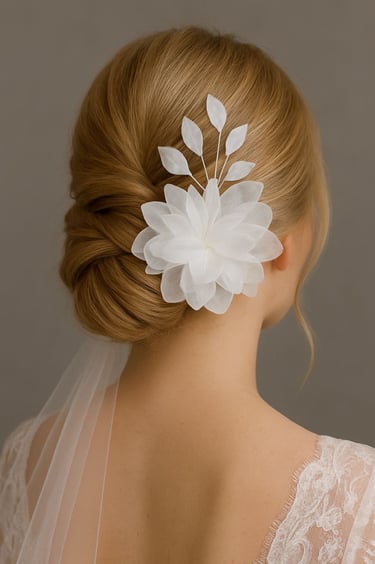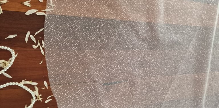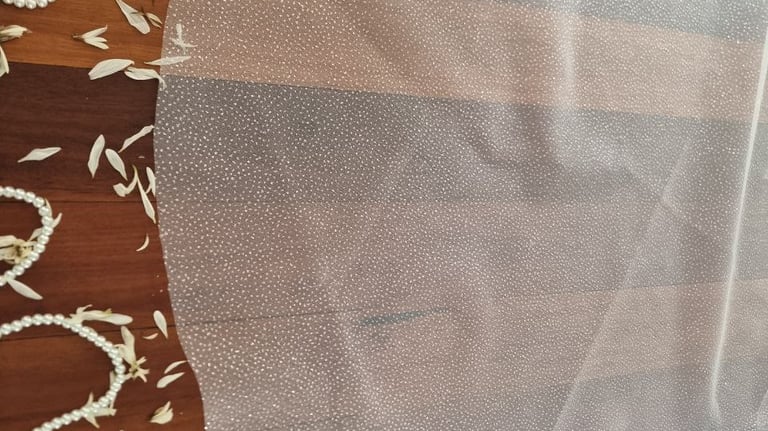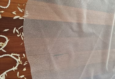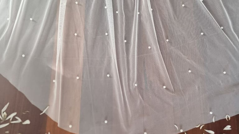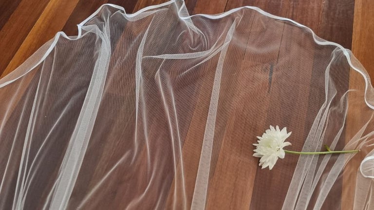 Crafted from delicate fabrics such as tulle, chiffon, organza, or lace, this veil can be adorned with intricate embroidery, a refined broderie edge, or sparkling pearl beading, adding a touch of timeless elegance to the bridal ensemble.