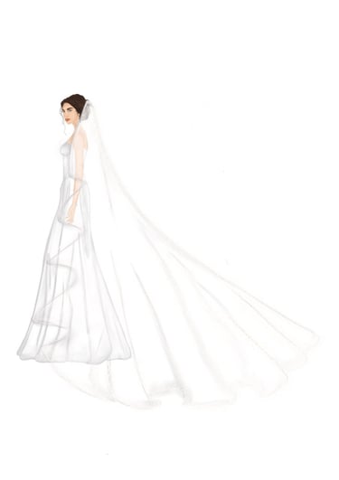 The cathedral veil is one of the most iconic choices for brides, exuding a sense of grandeur and romance. Its flowing length, typically between 280 and 300 cm, creates a breathtaking, ethereal effect that makes any bride feel like royalty.
